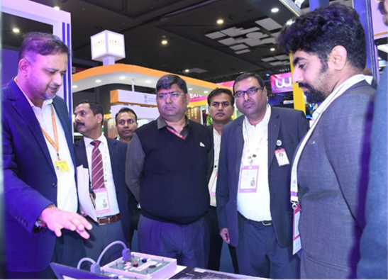 From left –Sh. C P Awasthi, Sh. Kiran TS, Sh. Jai Singh Dalal, Sh. Saibaba Darba Mulla (Additional Secretary, Ministry of Power), Sh. Suresh Kumar Kohli, and official from PGCIL during their visit to our stall at the AI Impact Summit 2026