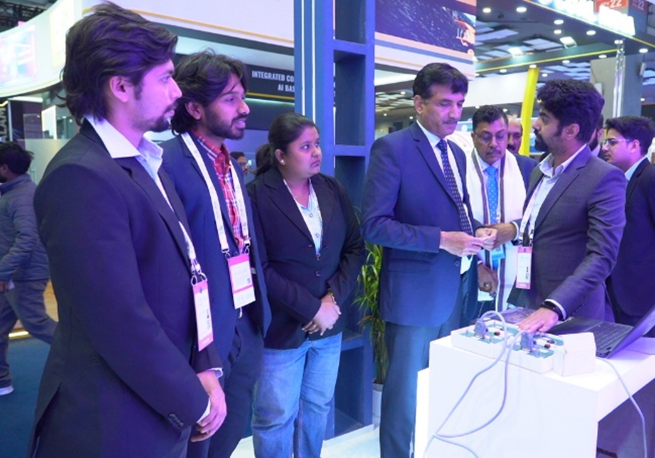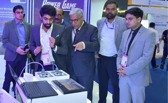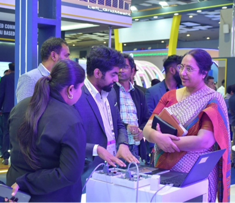 From Left: Sh. Rahul Chheda, Sh. Gaurav Jagadeesh, Ms. Sridevi P Rao, Dr. RK Tyagi- CMD PGCIL, Sh. Naveen Shrivastava –DO PGCIL, Sh. Kiran TS, during the visit in the AI Impact Summit